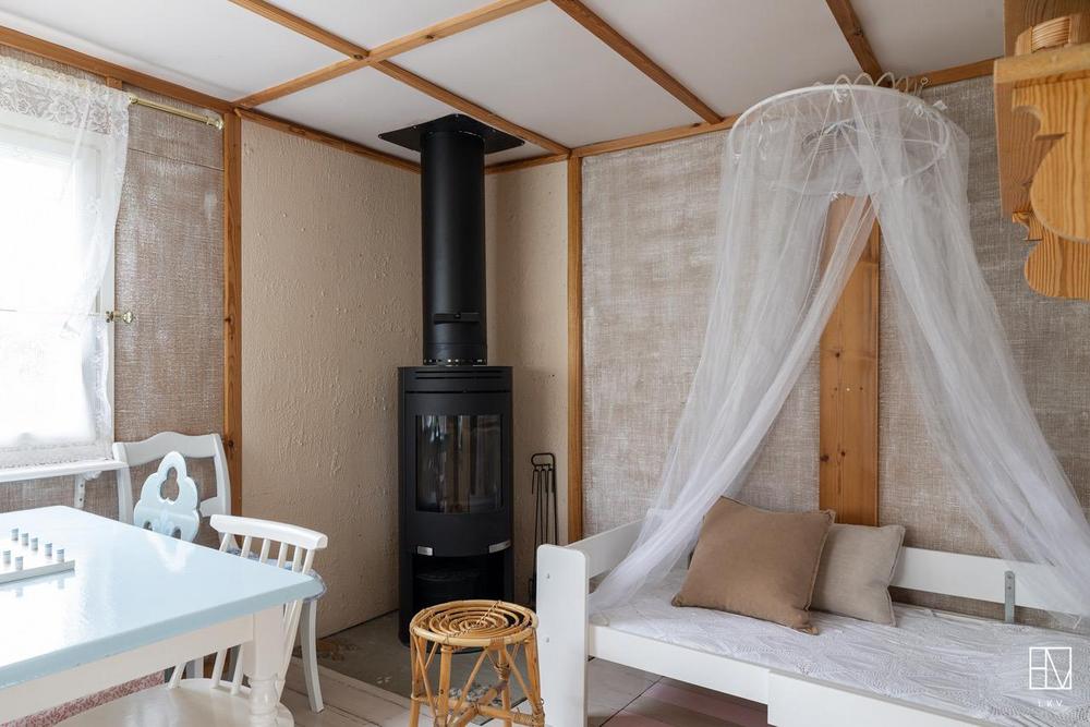 Palstalla on lisäksi suloinen leikkimökki, jossa voi myös halutessaan yöpyä.