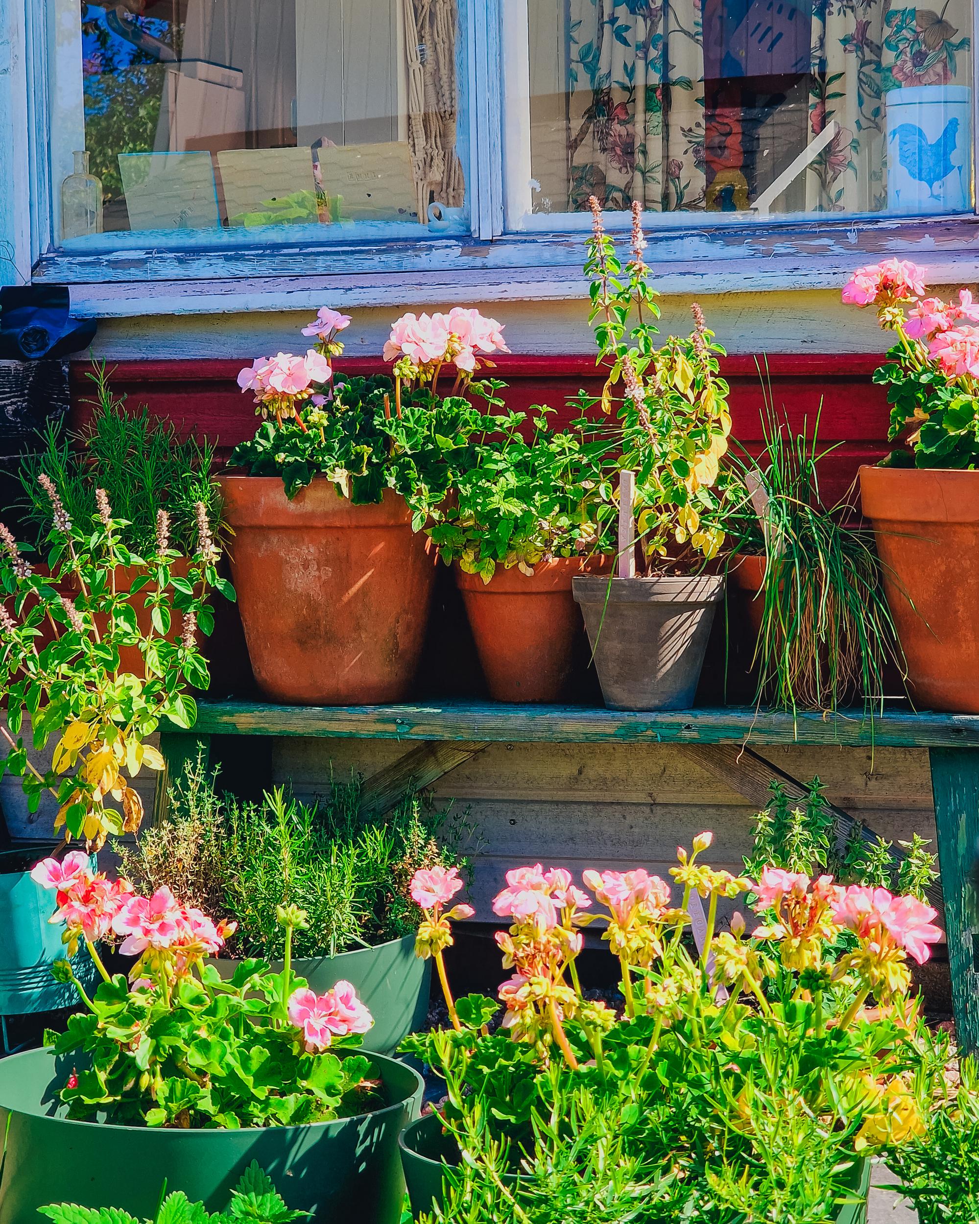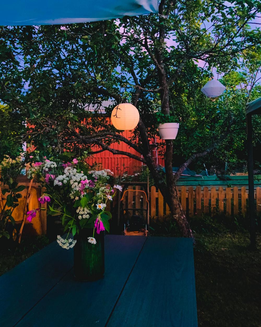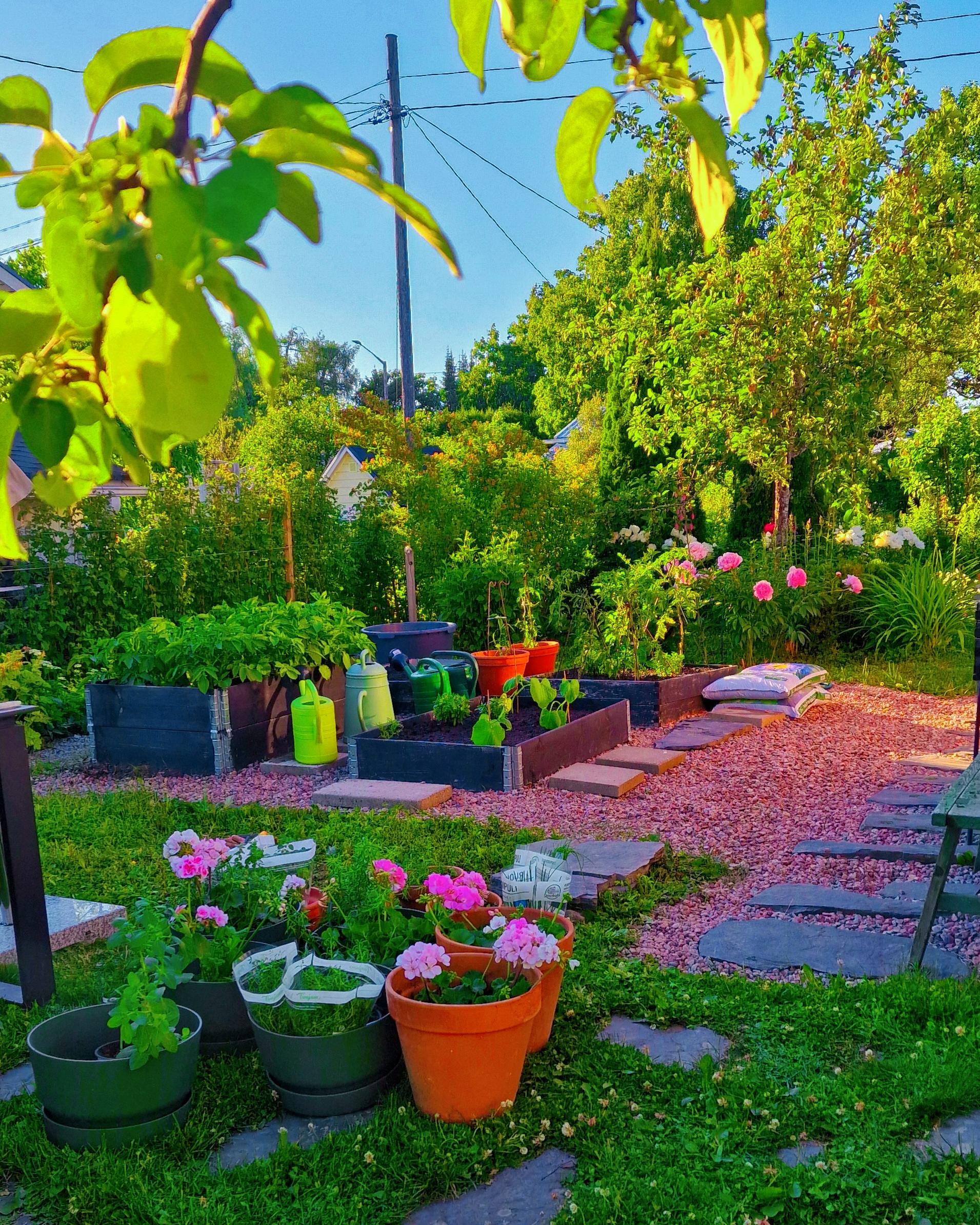 Noin 300m2 kokoiselle palstalle on rakennettu monipuolinen hyötypuutarha kasvatuslavoista ja ruukuista. Täällä kukoistavat niin perunat, kaalit, tomaatit kuin yrtit ja leikkokukatkin. Tontilla on neljä omenapuuta, valtavasti raparperia, vanhoja pioneja sekä vuosikymmeniä vanha, upea perennapenkki. Kulkureitit on tyylikkäästi viimeistelty somerolla ja liuskekivillä. Etupihalle on aloitettu oman niityn perustaminen kesällä 2024. Vanhat tuijat tuovat pihapiiriin yksityisyyttä ja rauhaa.